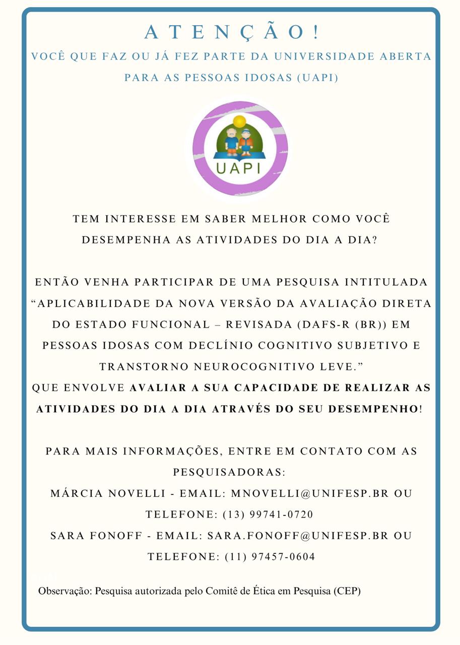 A antiga UATI foi renomeada "UAPI - Universidade Aberta à Pessoa Idosa"