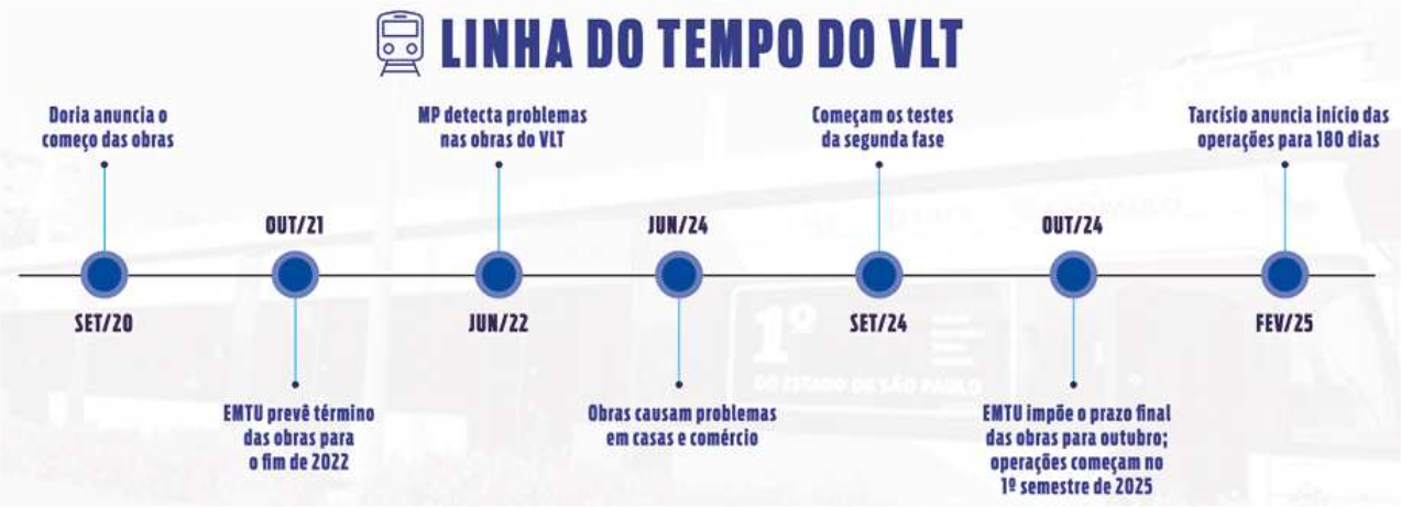 Entretanto, questionada por A Tribuna na edição do último domingo sobre o início da operação comercial do VLT, a Agência de Transporte do Estado de São Paulo (Artesp) respondeu que a conclusão está prevista para este ano, sem especificar um mês.